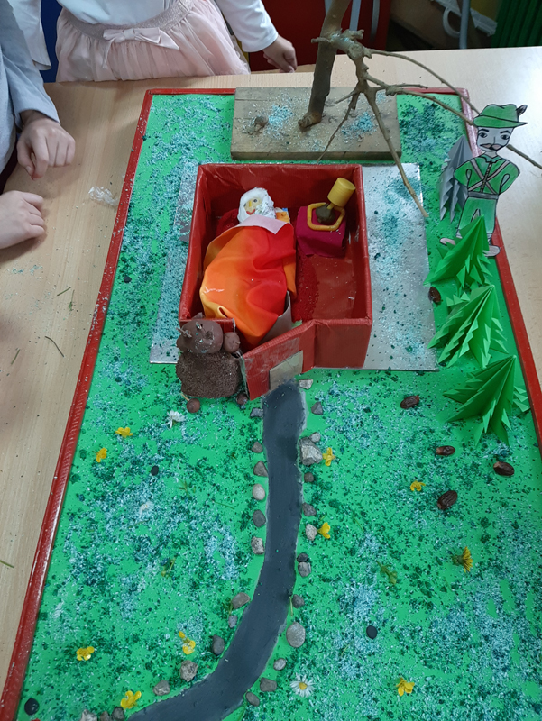 Петог дана, током пете радионице, сестре су правиле лутке на штапу. Наравно, у духу Дана планете Земље, ликови су били дрвеће, свеће, животиње… Онда су стале иза паравана (оног од јуче) и одиграле позоришну представу.