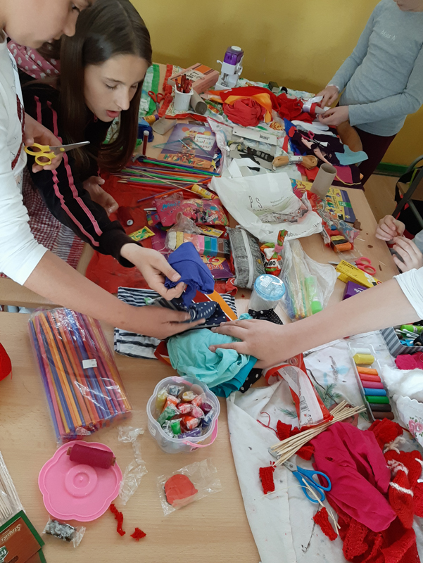 Са ученицима II/3 Основне школе „Бранко Радичевић“ из Батајнице и њиховом учитељицом Дивном Атлагић, дружила се Сања Вуковић током две радионице. Они су правили луткарско позориште. Од шљокица, вунице, конца, разнобојних тканина и трачица, свако је креирао лик по избору: било је ту зека, маца, корњача, оваца… али и омиљених јунака из бајки. И гле чуда – на крају су се сви ти ликови нашли у једној позоришној представи! Било нам је занимљиво, дивно смо се забавили, али и много тога научили.