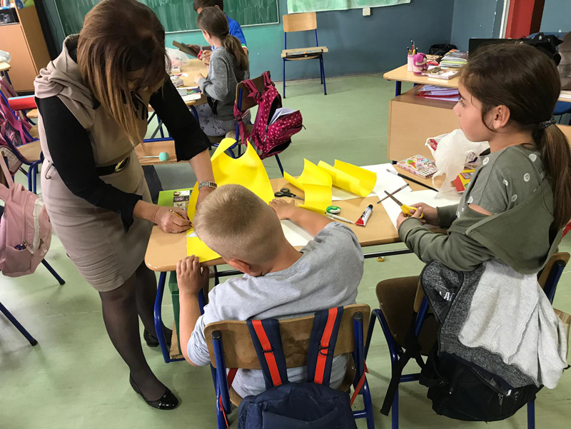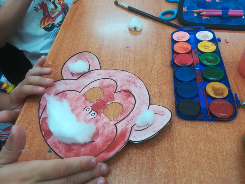 Анђела Јовић је са ученицима ОШ „Јован Поповић“ и њиховом учитељицом Снежаном Филиповић током две радионице правила маске. Није хтела да им задаје одређену тему, већ су сви могли да пусте машти на вољу. И јесу. Било је ту свега: омиљених животиња, Деда Мраза, али и – робота.