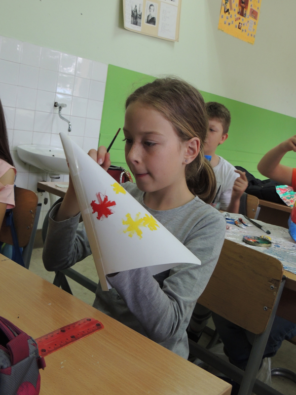 Били смо и у Старој Пазови, у ОШ „Бошко Палковљевић Пинки“. Ту је студенткиња Јована Нехватал са ученицима I-1 (учитељица Татјана Кркић) током две радионице направила право краљевство, пуно принцеза и принчева! Користили смо бојице, колаж папир, креп папир, тканину, вуну… Било је чаробно!